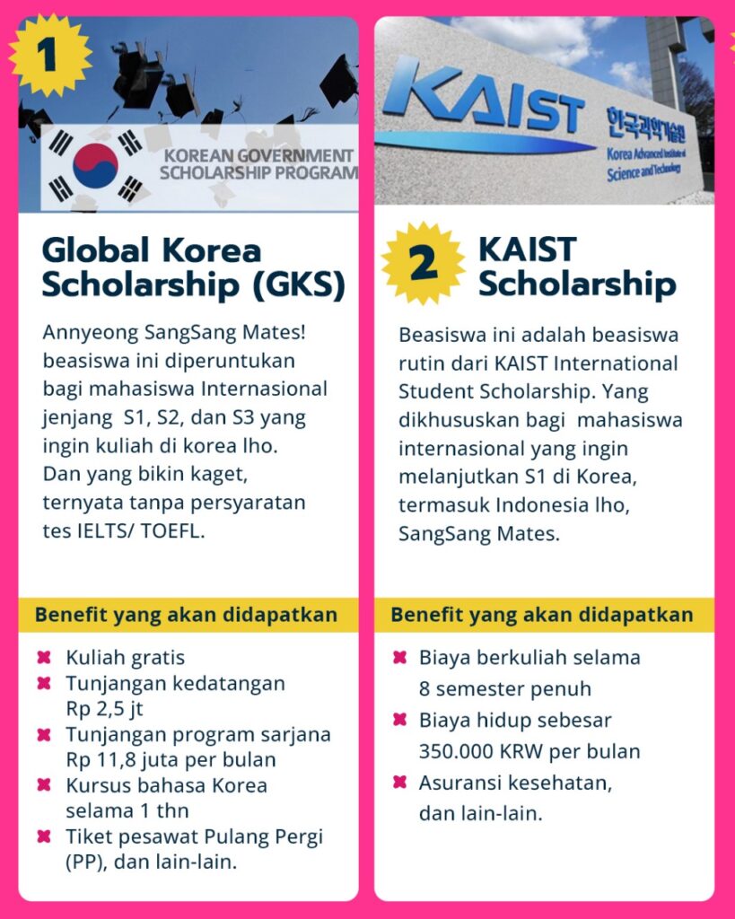 Update4 Beasiswa Fully Funded di Korea Selatan! Less than a minute to read SangSang Univ November 1, 2023November 1, 2023 Coba ke Korsel jalur beasiswa, yuk!Ke Korsel tuh jadi salah satu impiannya anak muda, apalagi kalau perginya jalur beasiswa. Sangmin bagi info nih! SangSang Univ November 1, 2023November 1, 2023Leave a Reply Cancel replyYour email address will not be published. Required fields are marked *CommentName*Email*WebsiteSave my name and email in this browser for the next time I comment. Δ