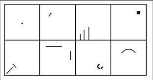 Delapan kotak berisikan pola-pola merupakan bagian dari tes Wartegg