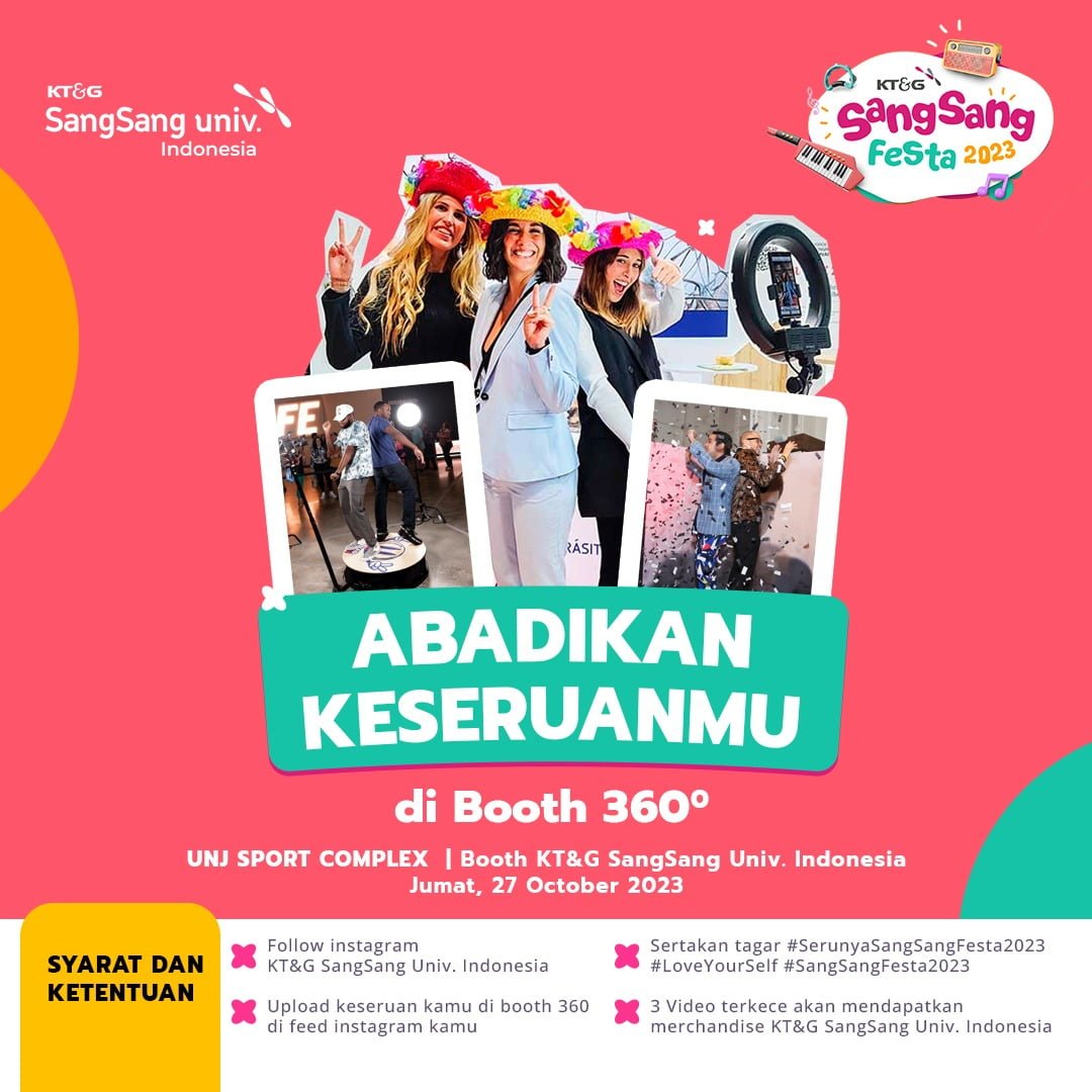 UpdateYuk, Abadikan Keseruanmu di KT&G SangSang Festa 2023 Dengan 360! SangSang UnivNovember 1, 2023November 1, 2023