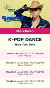 Di kelas ini, kamu bakal belajar gerakan dasar K-pop dan gimana cara ngedance dengan keren. Kamu juga bakal latihan biar gerakanmu kompak sampai bisa bawain koreo lagu K-pop favorit. Pas banget buat kamu yang mau ngedance kayak idol kesayangan dan tampil lebih pede! Join WhatsApp Group: K-Pop Dance (Batch 1 – 2025)