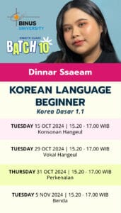 BINUS – Korean Language Beginner – Batch 10