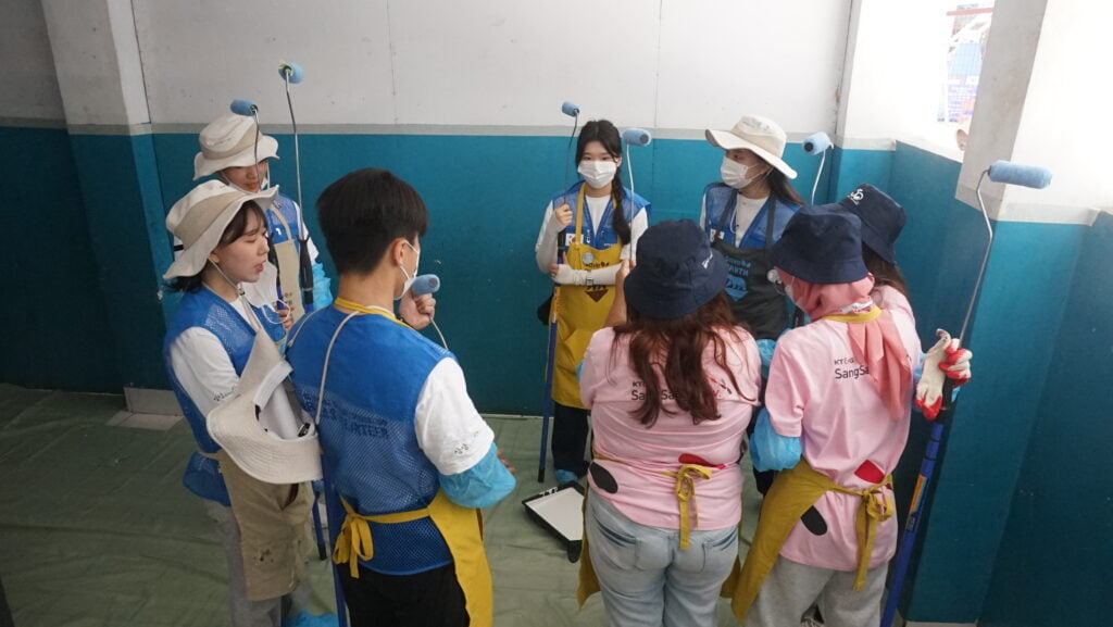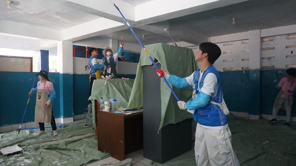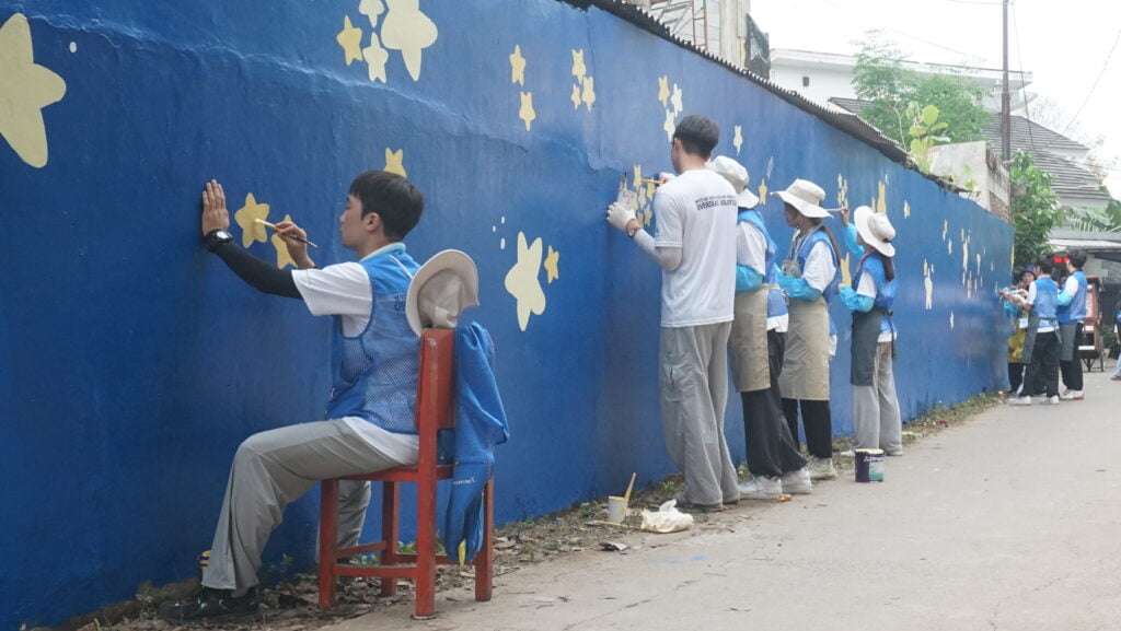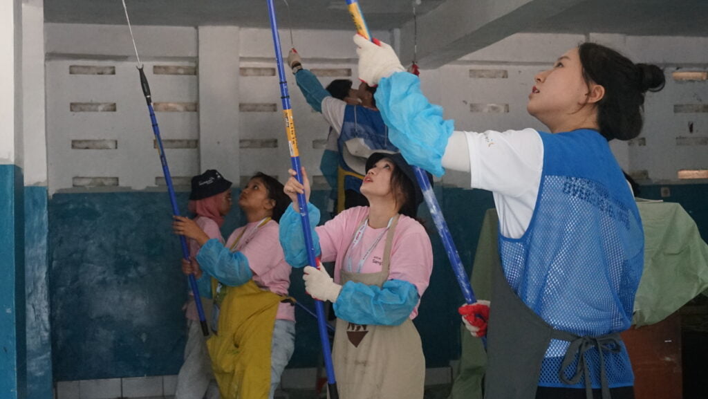 Seharian full mahasiswa Indonesia dan mahasiswa Korea Selatan melakukan peremajaan tembok SD Ananda Bogor. Mau ikut kegiatan selanjutnya?